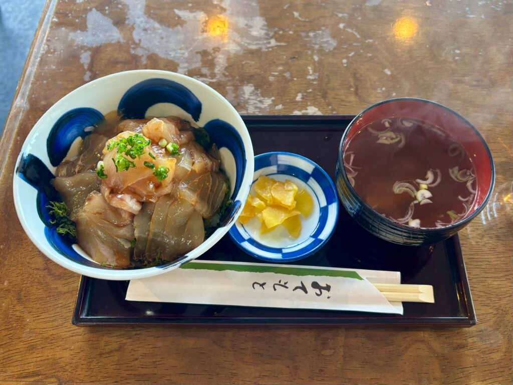 昼食は伊豆大島名物のべっこう寿司 or べっこう丼をいただきました。